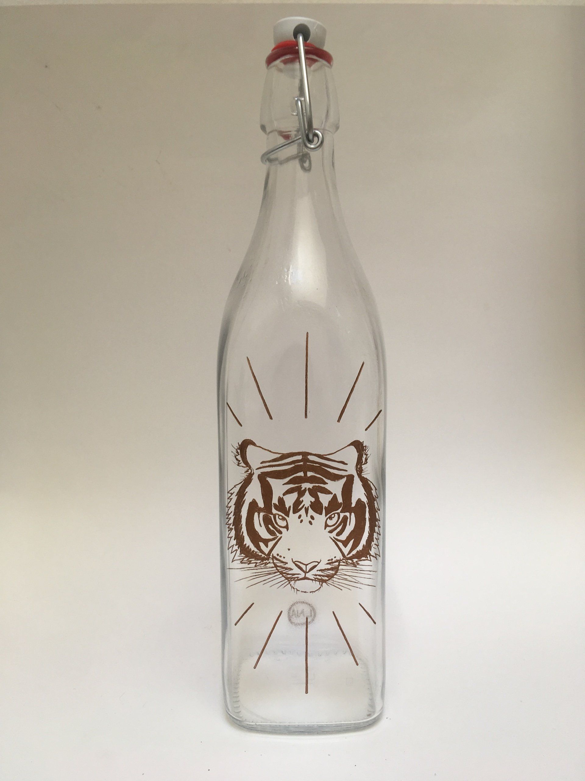 Drawing engraved on glass bottle, collaboration with Dodé la boutique atelier, 2019